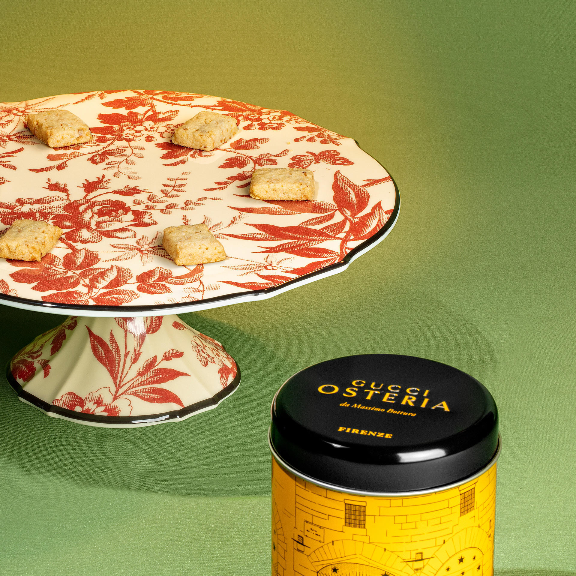 Un viaggio al gusto di nocciola, racchiuso in un’elegante scatola di latta che raffigura lo storico Tribunale della Mercanzia, palazzo risalente al 1359 e simbolo di Firenze, oggi casa del Gucci Garden e di Gucci Osteria. Scopri dei biscotti capaci di creare momenti indimenticabili con sapori familiari che portano a nuove scoperte.