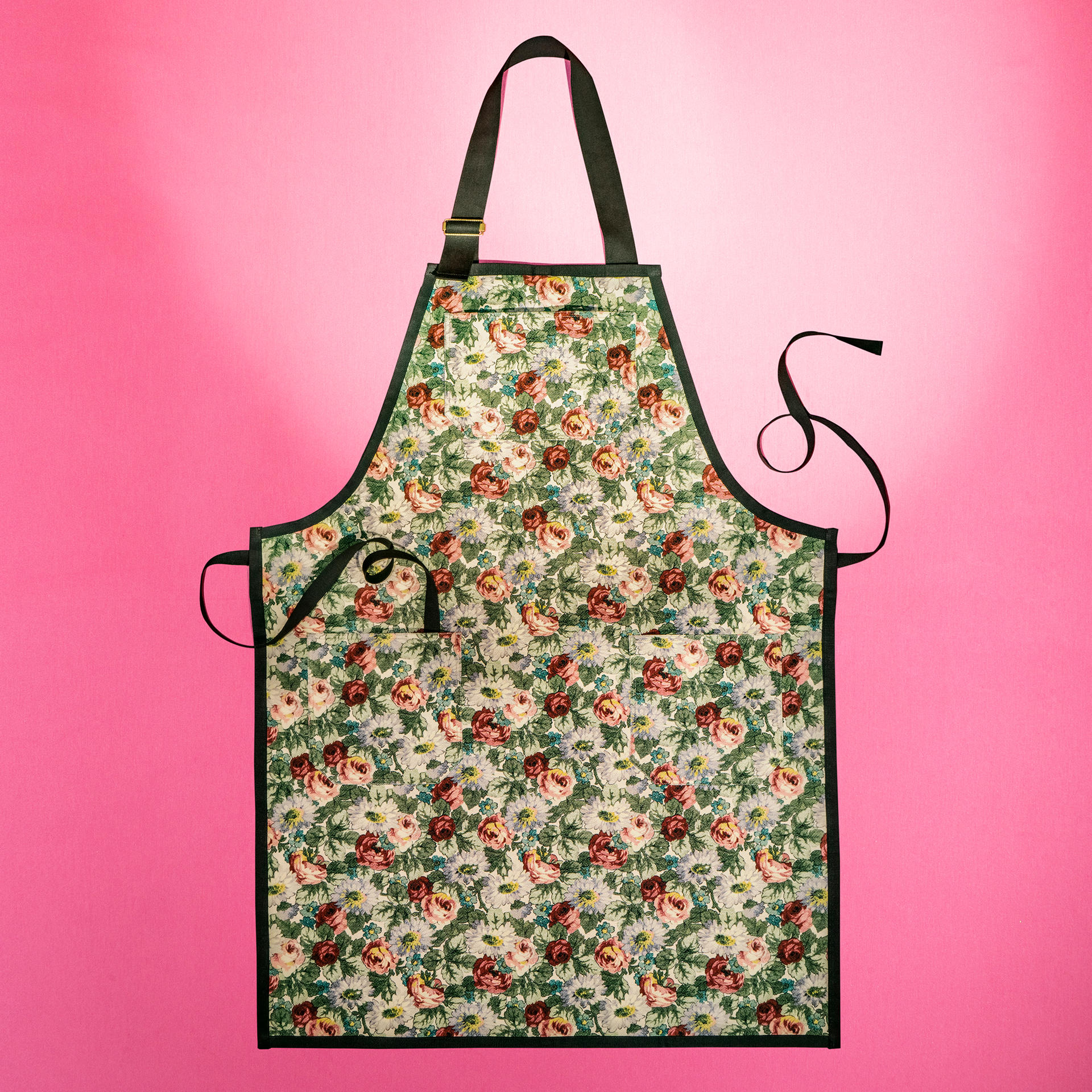 Decorato con una divertente stampa floreale, questo grembiule in 100% cotone è dotato di tre tasche frontali per riporre gli utensili da cucina o il telefono. Un elegante nastro nero corre lungo i bordi e la cintura. Da regalare o regalarsi per portare un tocco di stile in cucina.