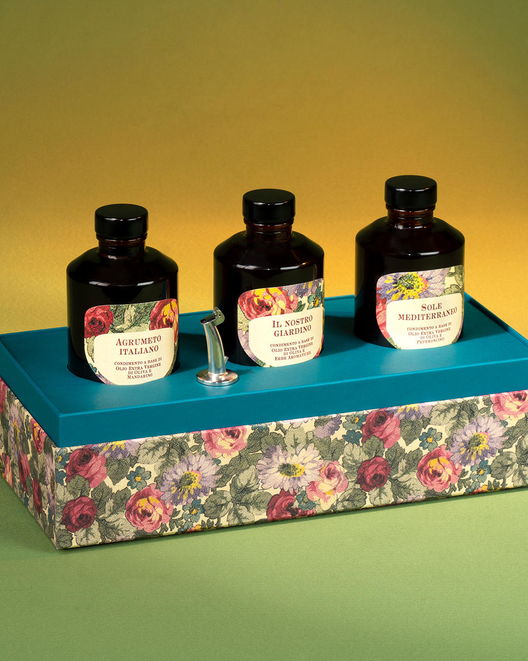 Un set creato in collaborazione con l’innovativa azienda ligure Galateo & Friends, i cui oli sono presenti sulle tavole dei migliori ristoranti di tutto il mondo. Scopri l’arte del vivere bene con questo set di tre condimenti a base di olio extravergine d’oliva, presentati in bottiglie decorate dal motivo floreale di Gucci.