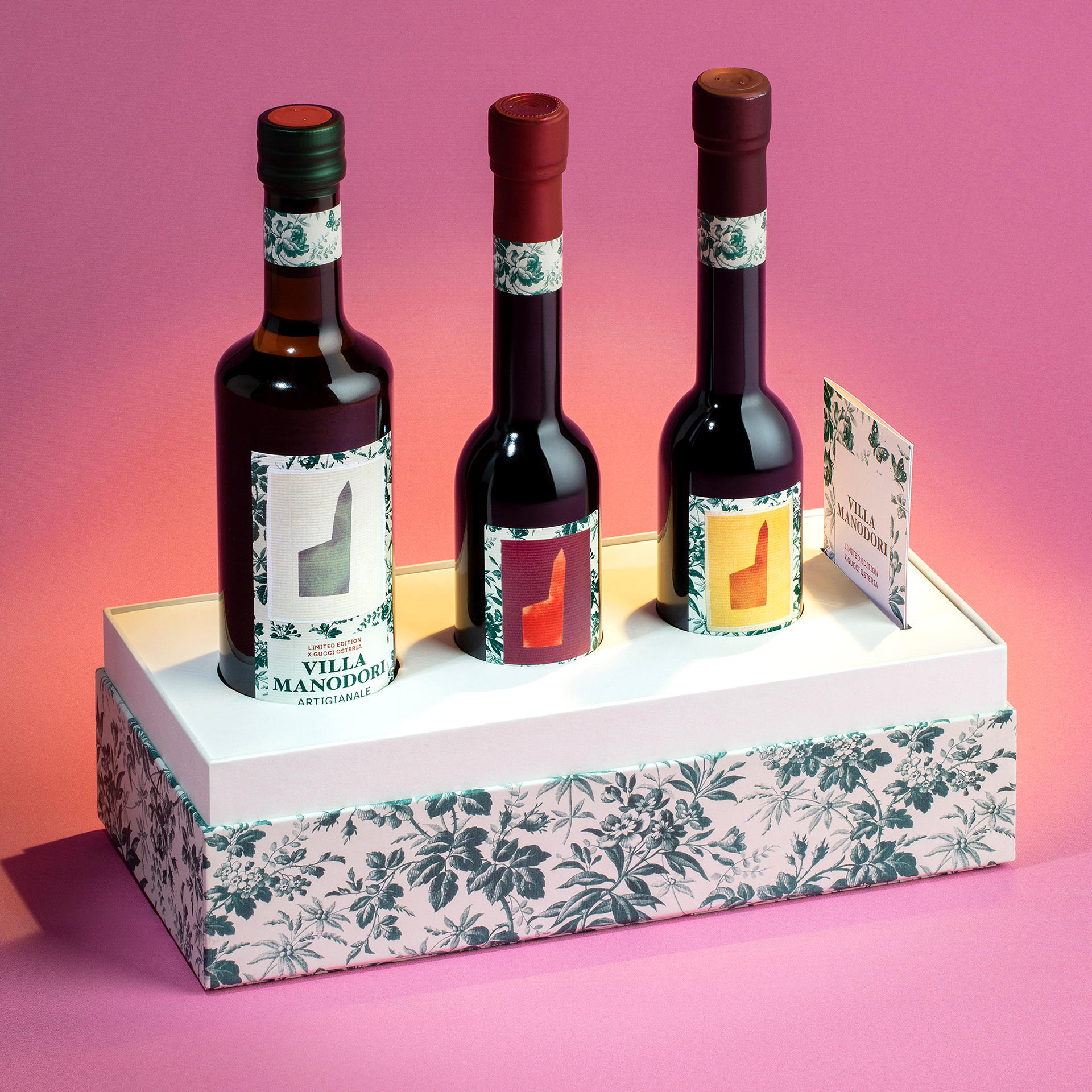 L’armonia tra tradizione e innovazione è racchiusa nel set di condimenti artigianali nato dalla collaborazione tra Villa Manodori, lo Chef Massimo Bottura e i Co-Executive Chef di Gucci Osteria Firenze Karime López e Takahiko Kondo. Allarga i tuoi orizzonti culinari.